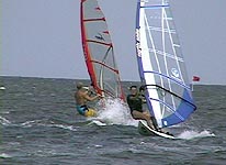 The site offers shallow, flatwater sailing. Northeast winds push the water out into the sound to create very shallow water near shore. Runs to the reef can be made from the Ocean Air site (fomerly Windsurfing Hatteras).