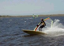 Floras Lake is a spring fed lake with only a sand spit separating it and the Pacific. Winds average 15-25 knots during the summer months out of the Northwest, which are more consistent than winter's Southwest winds. Northwest winds blow fairly consistently from May through September, with Southwest winds prevailing November through March. The months of April and October can be a mixture of both. Light winds in the morning are perfect for the beginners " while afternoons are favored by the intermediate/advanced sailors. Many spots on the north end of the lake are shallow enough to touch, making it great for learning waterstarts. The lake temp is fairly warm in the summer (averaging 68-70 degrees), but full wetsuits are usually in order because the winds can make it chilly once out of the water.