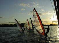 The most popular launch site is from the Comverse building at the north end of the lake. The parking lot on the east side of the building can be used at no fee (just don't block the road), and there is a large grassy rigging area. Another popular launch is off the "wall" right next to the road on the middle of the east side of the lake. Conditions are typically gusty, particularly in a northwest wind.