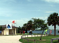 Located on the Central East Coast of Florida, Merritt Island is just minutes away from Cape Canaveral and a 50 minute drive to Disney World. Sailing is on the Banana River, a salt water "sound", with no currents or tides and chest deep water with temperatures ranging from 70 to 85. Calema Windsurfing has equipment rigged and ready on the shoreline. Kitesurfing is not allowed at this park.
