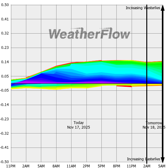 - The cumulative height of the curve is the total pressure difference across the Gorge. The higher the curve, the stronger the wind.